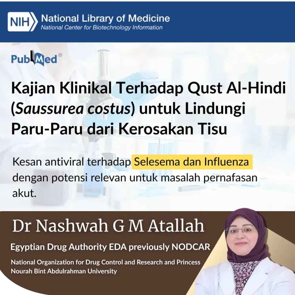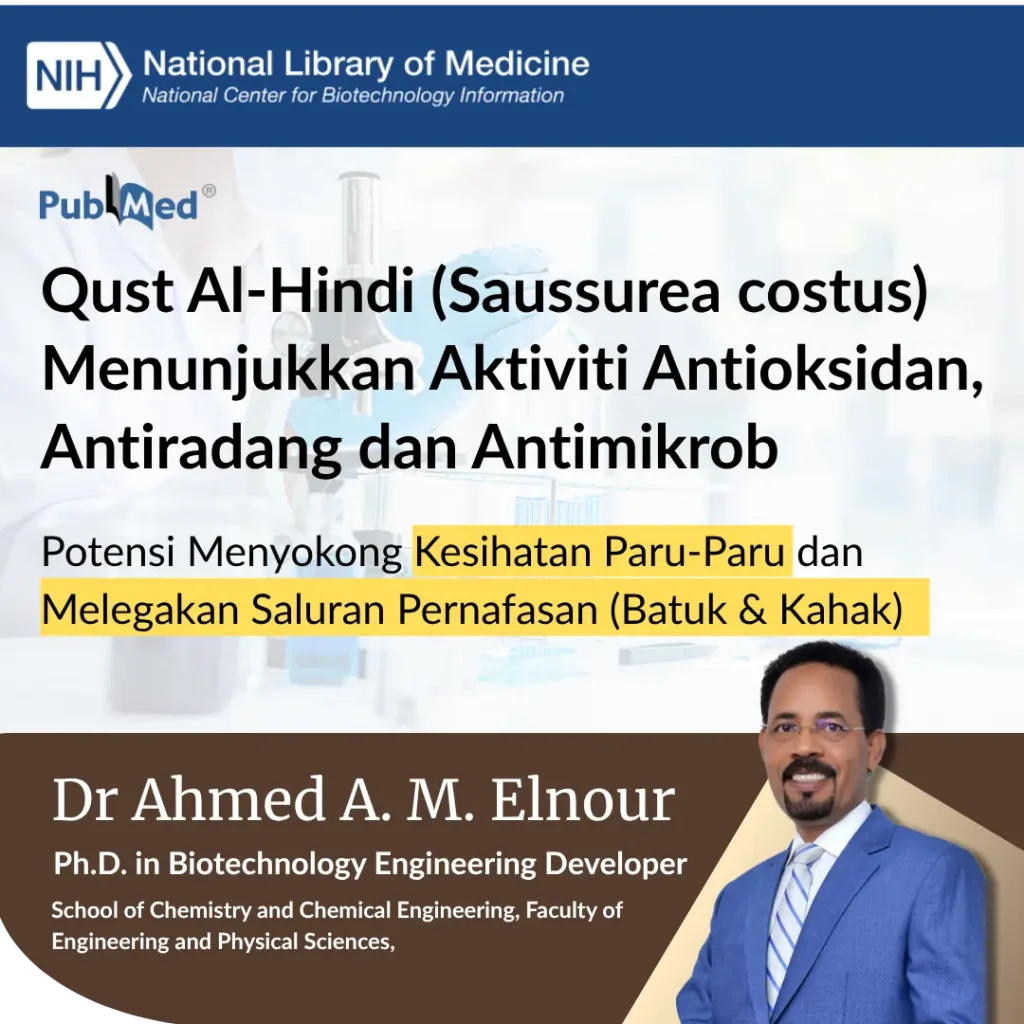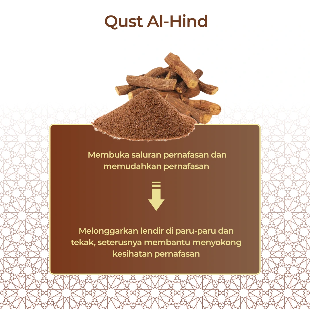 Dari hasil kajian, qust al-hind terkenal dengan potensinya dalam sokongan pernafasan, sifat anti-radang dan kesihatan keseluruhan.