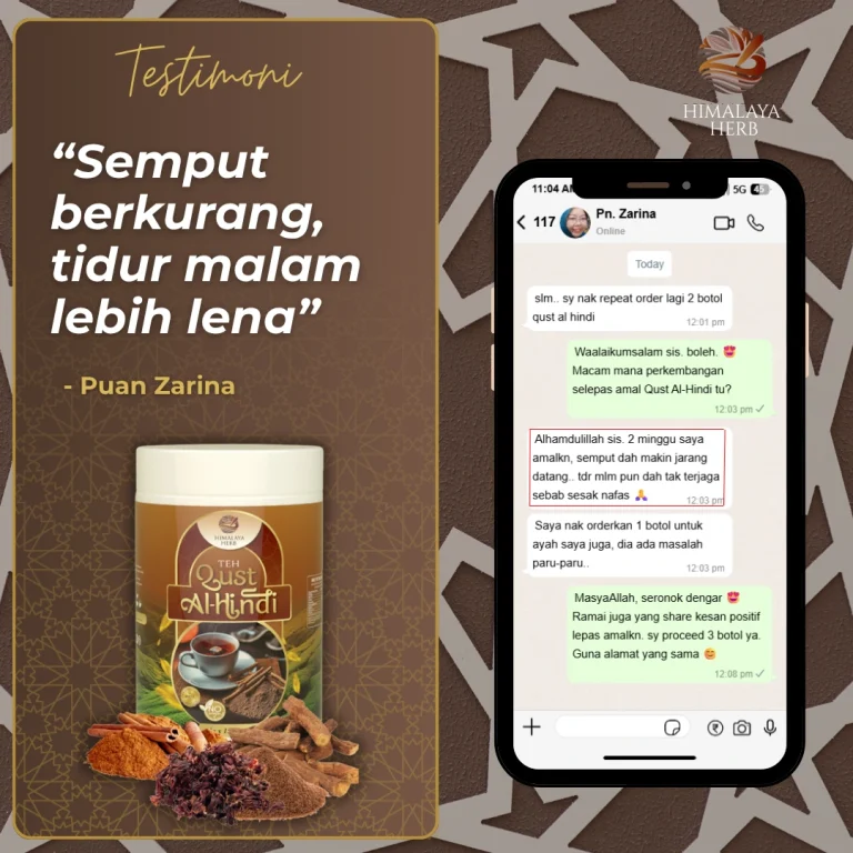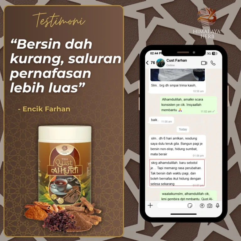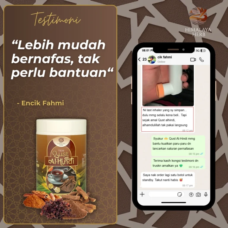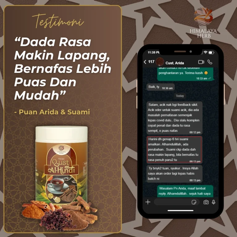 Masalah Cepat letih, Nafas tersekat & Batuk Berpanjangan Beransur Mudah Dengan Teh Qust Al Hind Himalaya Herb. 7x Lebih Polifenol Dari Jenis Teh herba yang Lain